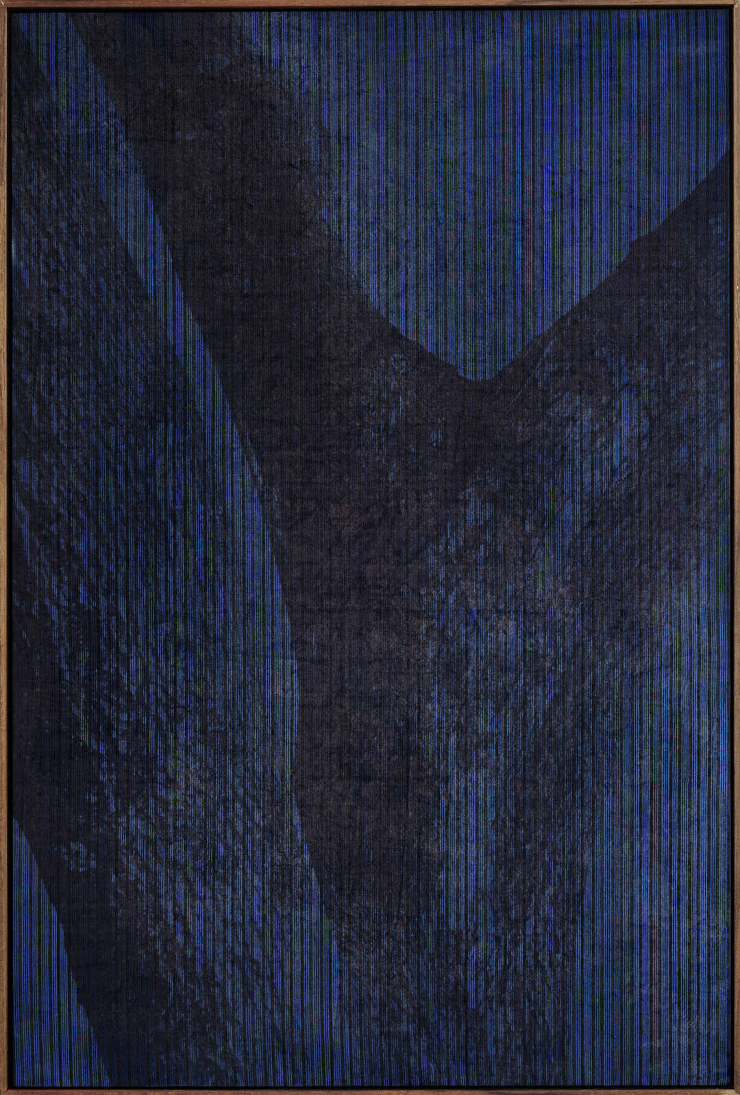 Alexander Sebastianus Hartanto, 'F. Rumination II' 2021, black cyanotype on handwoven indigo dyed cotton, framed with reclaimed wood, 94 x 63 cm. Image from Artsy