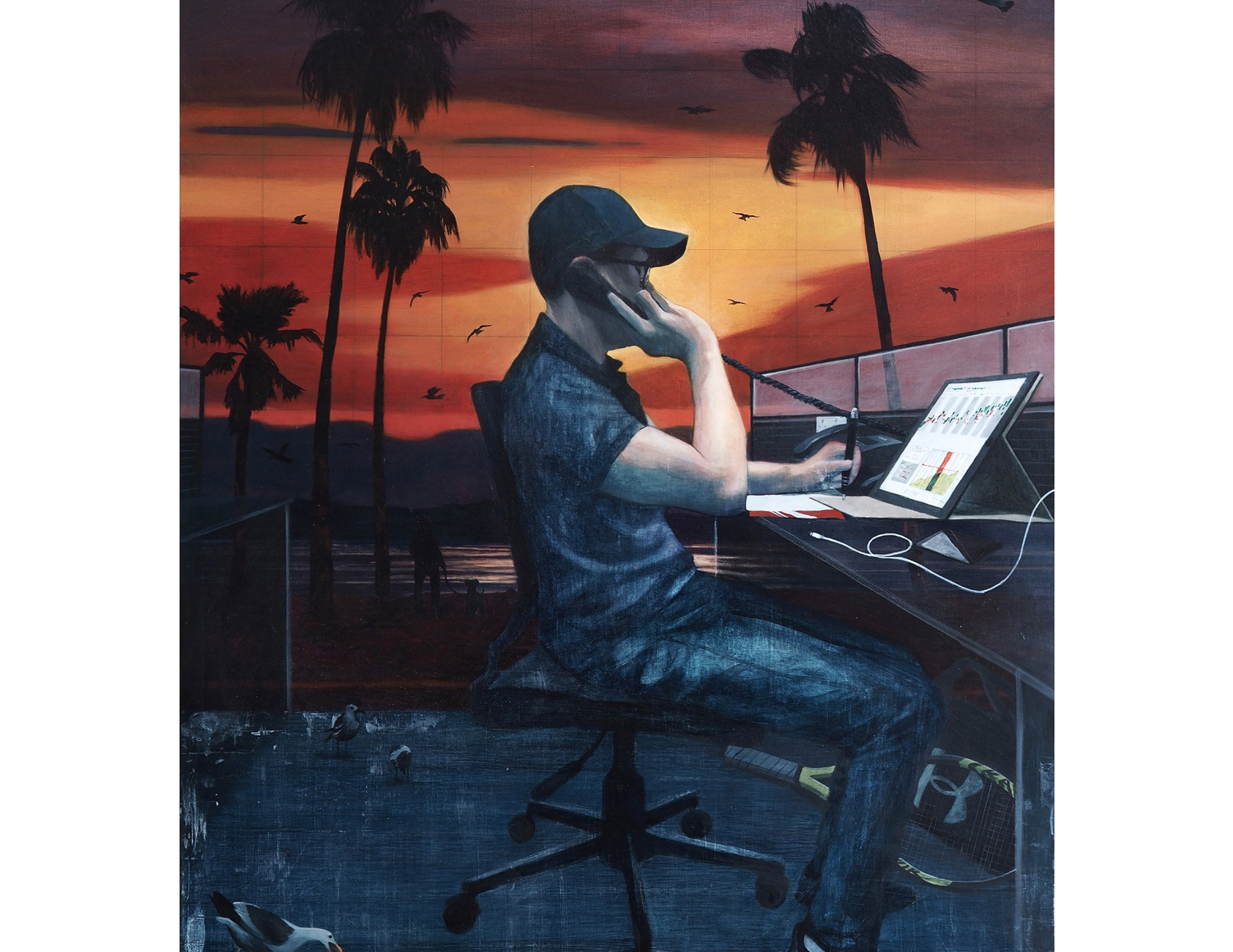 Casey Tan, 'Go To Work Sky No Colour, Go Home Sky Also No Colour', 2021, acrylic on canvas, 102 x 76 cm. Image from Cuturi Gallery