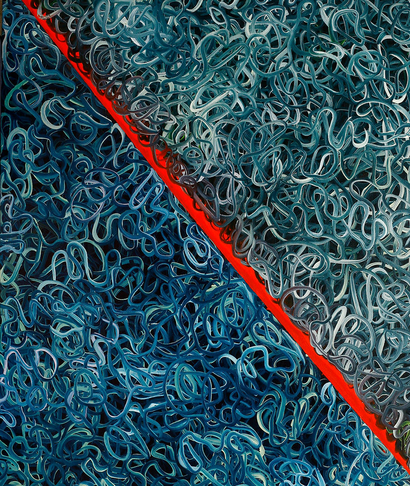Being known for her abstract self-portraits, Duong Thuy Duong amazes the audience with “confusing” lines arranged deliberately in a realistic dark space. With the style of “non-self portrait painting”, Duong firstly expresses her feeling and experience in artworks and then engages the audience into the talk to find their ego and question themselves with the unanswered questions.