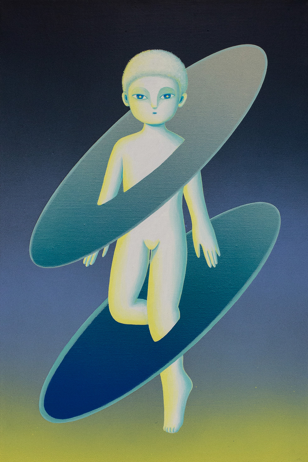 His work “Teleport Art” gained notoriety in the New York street art scene and later in Bangkok. The element of time is a predominant concept in Gongkan’s paintings: surrealistic canvas populated by human figures, and realized with graphic flat strokes. Through presenting different visions of the present times or rewriting the past, the artist creates alternate realities in the process.