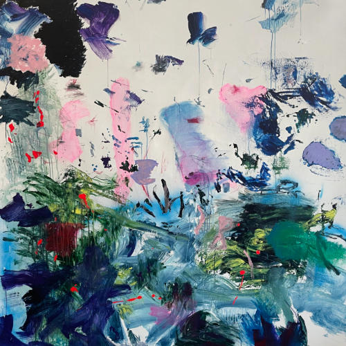 Since receiving his fine arts degree, Ibrahim’s approach to painting has been rooted in characteristics of abstract expressionism—a visual language shared among many of his pupils such as the prolific Minang artists, Yunizar, Handiwirman Saputra, Yusra Martunus, and Zulkarnaini. Ibrahim’s method of painting is founded on an acute awareness of feeling; emotions experienced day-to-day, at home or at work, are integral to his creative decision-making. For Ibrahim, allowing emotions to direct his artistic approach is the most effective way to articulate both his inner and external self. Inspired by the works of abstract-expressionist pioneers Willem de Kooning and Jackson Pollock, Ibrahim pursues a creative process grounded in visceral instinct and spontaneity.