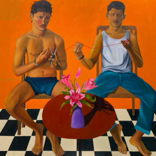 Israfil is a Singaporean artist and a visual storyteller. He transposes the lived and dreamed experiences of the people around him into a colourful arrangement of warm hued canvases. His oil paintings feature neo-expressionist poster-like compositions, an alluring medley of relayed narratives and inspirations. Vivid colours, bold outlines, and rhythmic figures welcome audiences to walk through a series of cinematic events. Mysticism, movement, and drama breeze through Israfil’s collection of work as he crafts a harmonious marriage of local encounters with neo-latin cultural influences.