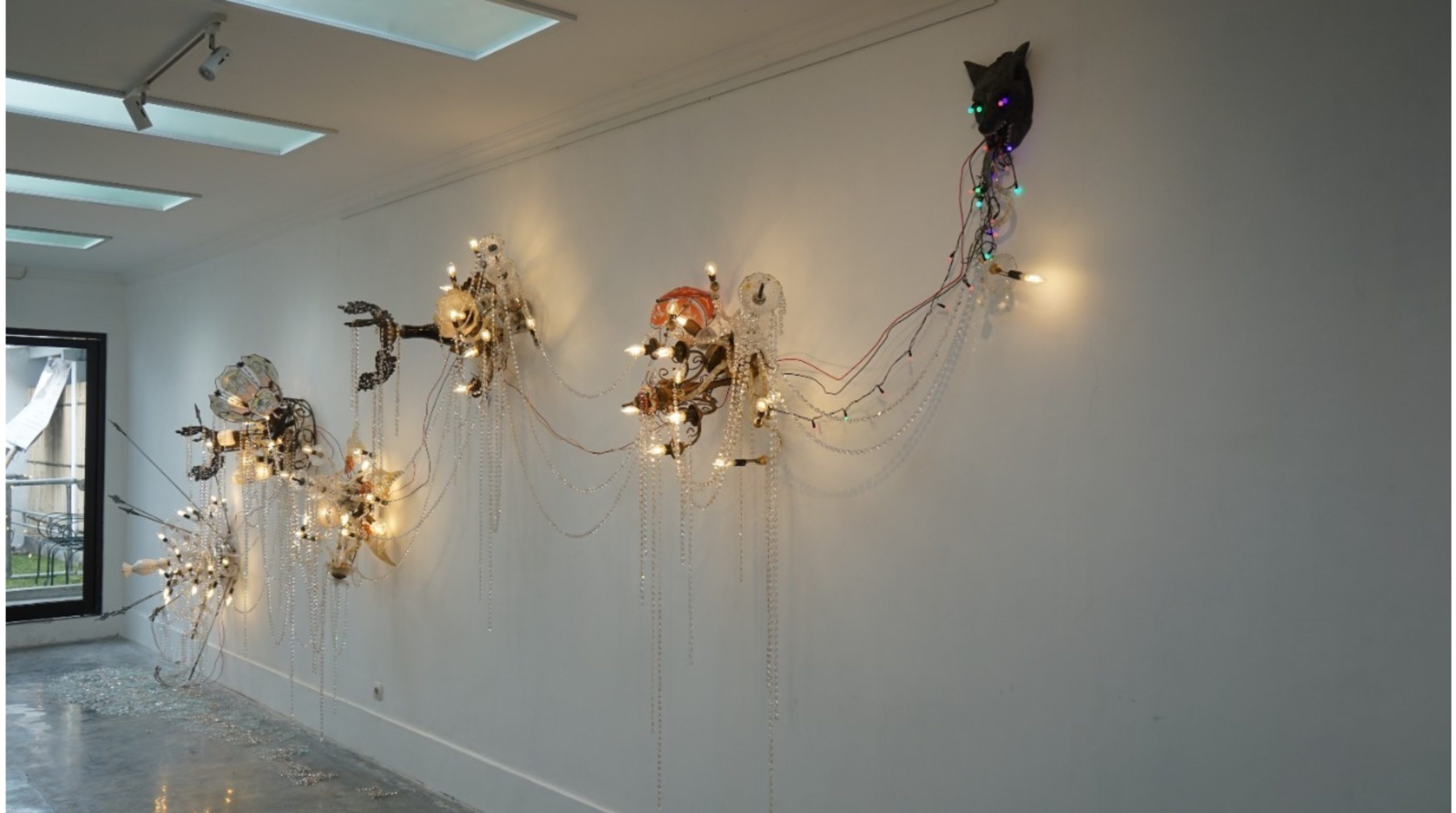 Jompet Kuswidananto, ‘Strange Form of Love’, 2022, glass, iron, latex and light installation, 250 x 700 x 50 cm. Image from Artsy