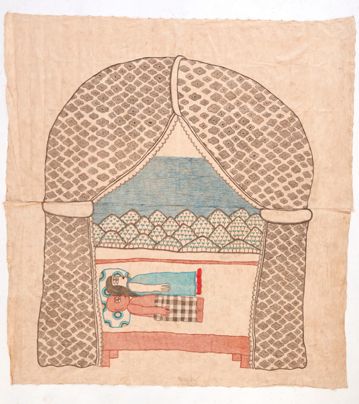 Jumaadi, ‘Bed Chamber', 2019, acrylic on cloth, 300 x 380 cm. Image from Christine Park Gallery