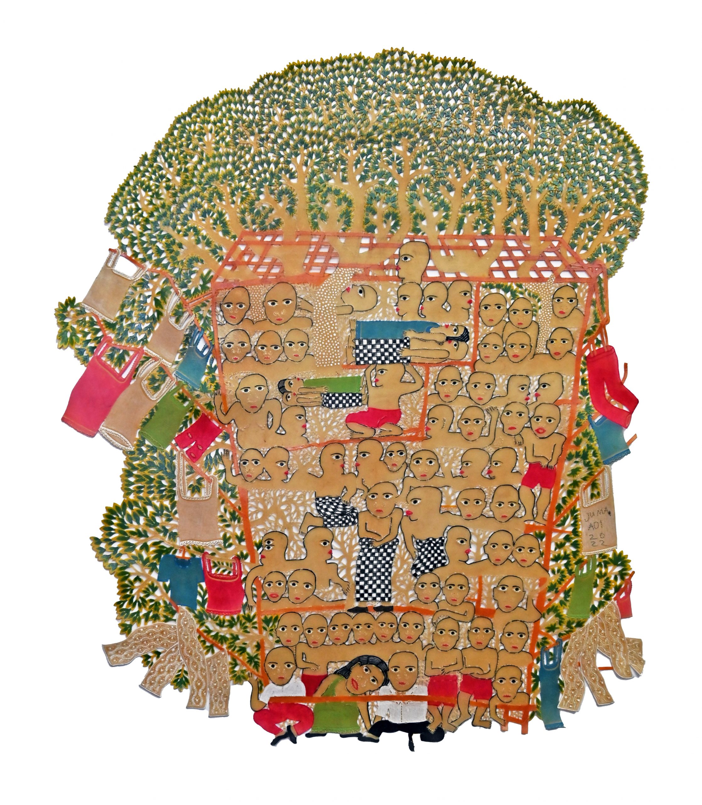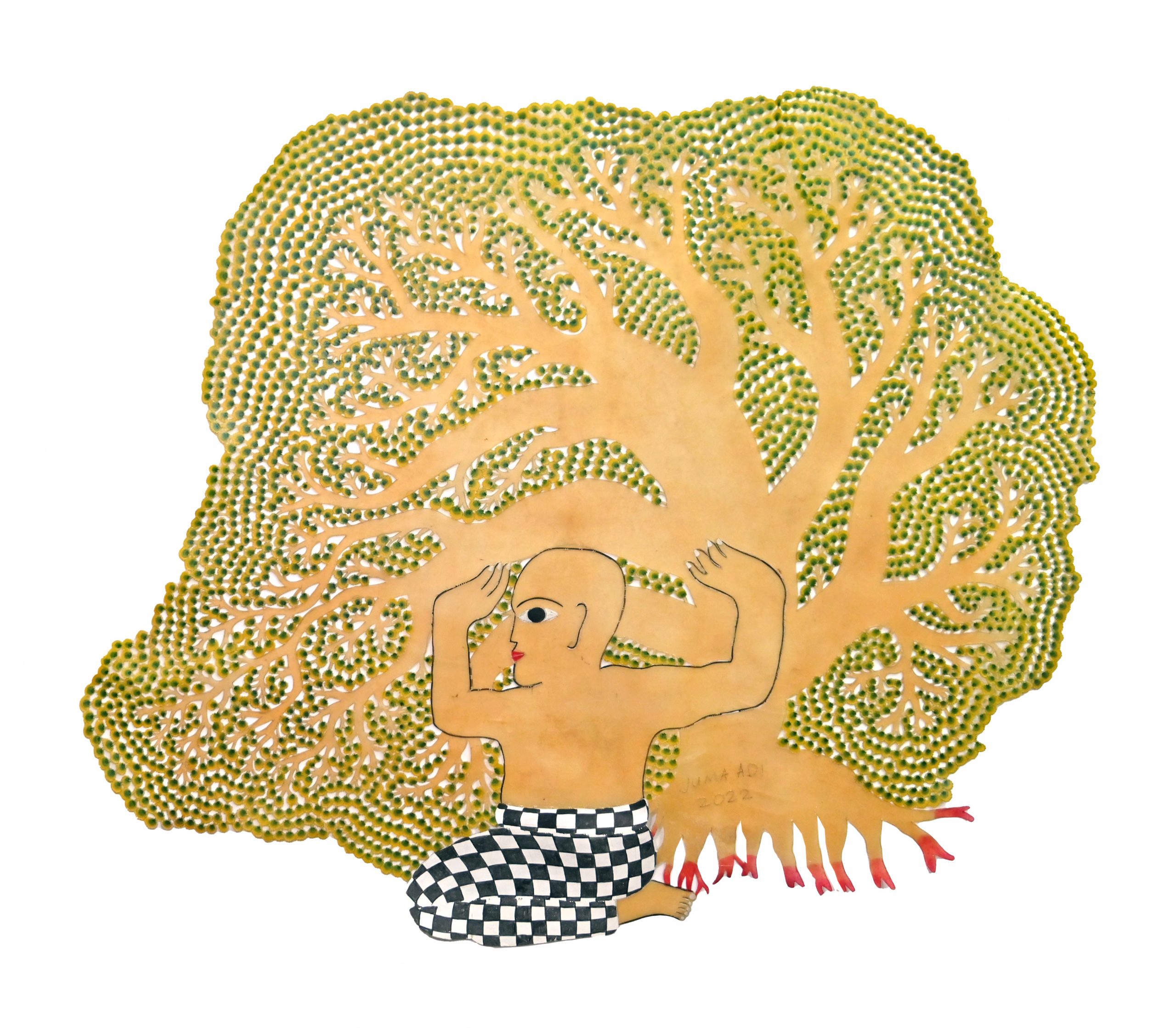 Jumaadi, 'Tree House', 2022, acrylic on buffalo hide, 111 x 95 cm. Image from S.E.A. Focus