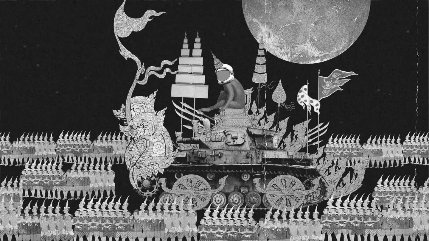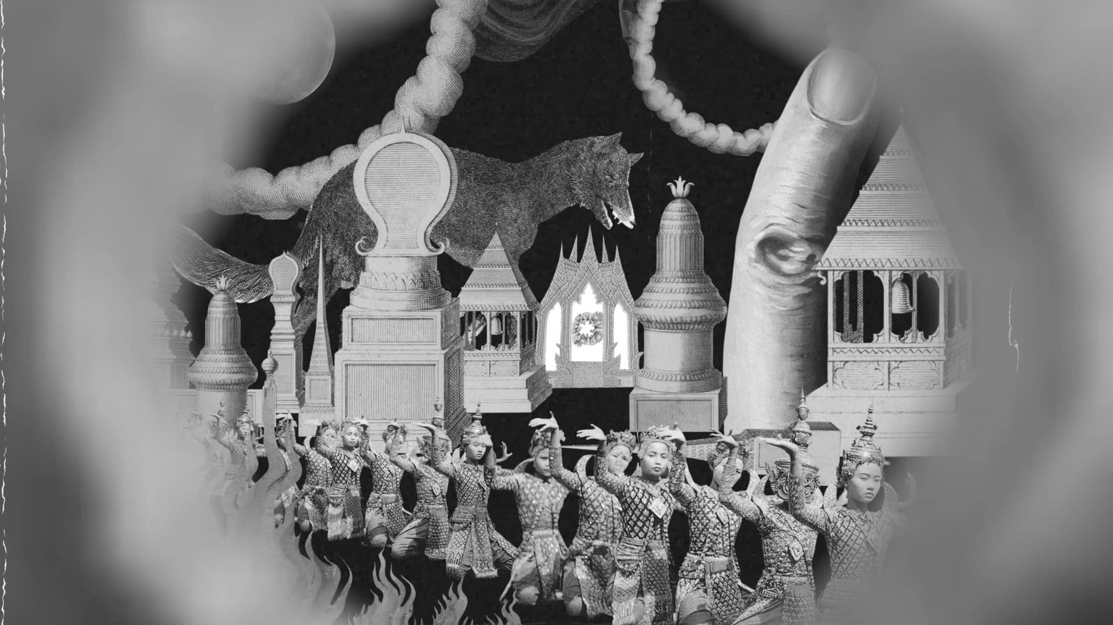 Nakrob Moonmanas completed a degree in Thai Literature from Chulalongkorn University. Collages are the foundation of his artistic practice and his medium of choice. These are based on research he has carried out into the visual production of Thai arts and cultures, in illustration, publications, photographs and advertisements. Nakrob draws from different sources of inspiration and combines a wide range of images in his works. From fragments of local history and visual culture, to more contemporary aesthetics, he does not hesitate to replace Thai icons with characters from Western mythologies and Christianity in order to create his own narratives. In his works, Western and Thai influences constantly merge in an attempt to make the hermetic concept of ‘Thainess’ more intelligible. The artist has had solo exhibitions such as ‘Sacrifice’ at People’s Gallery in Bangkok Arts and Cultural Centre in 2017 and ‘Coronet’ at Thonglor Art Space in 2018, as well as participated in numerous group exhibitions, including ‘Inbetweenness’ at The Prelude One Bangkok in 2019, and ‘The Immeasurable and World’s End at JWD Art Space’ in 2022. From 2020 to 2021, Nakrob was a laureate of the Cité Internationale des Arts Paris. His artist residency in Paris was supported by the Institut Français and the embassy of France in Bangkok, Thailand.