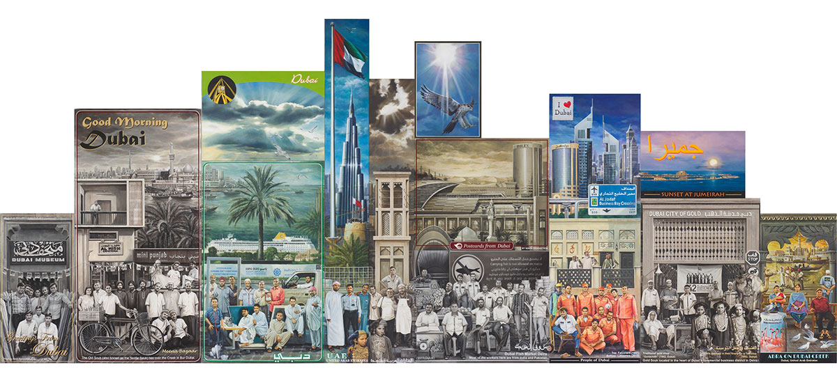 Navin Rawanchaikul, 'Postcards from Dubai (Day)', Acrylic on canvas, 230 x 555 cm (13 panels), Image courtesy of Yavuz Gallery