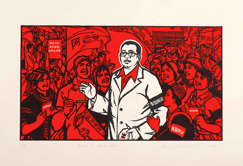 Navin Rawanchaikul, 'They Love You Comrade Navin', 2007, Woodblock print on paper, 72 x 45.5 cm print, 100 x 70cm with border, Image courtesy of Yavuz Gallery