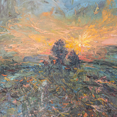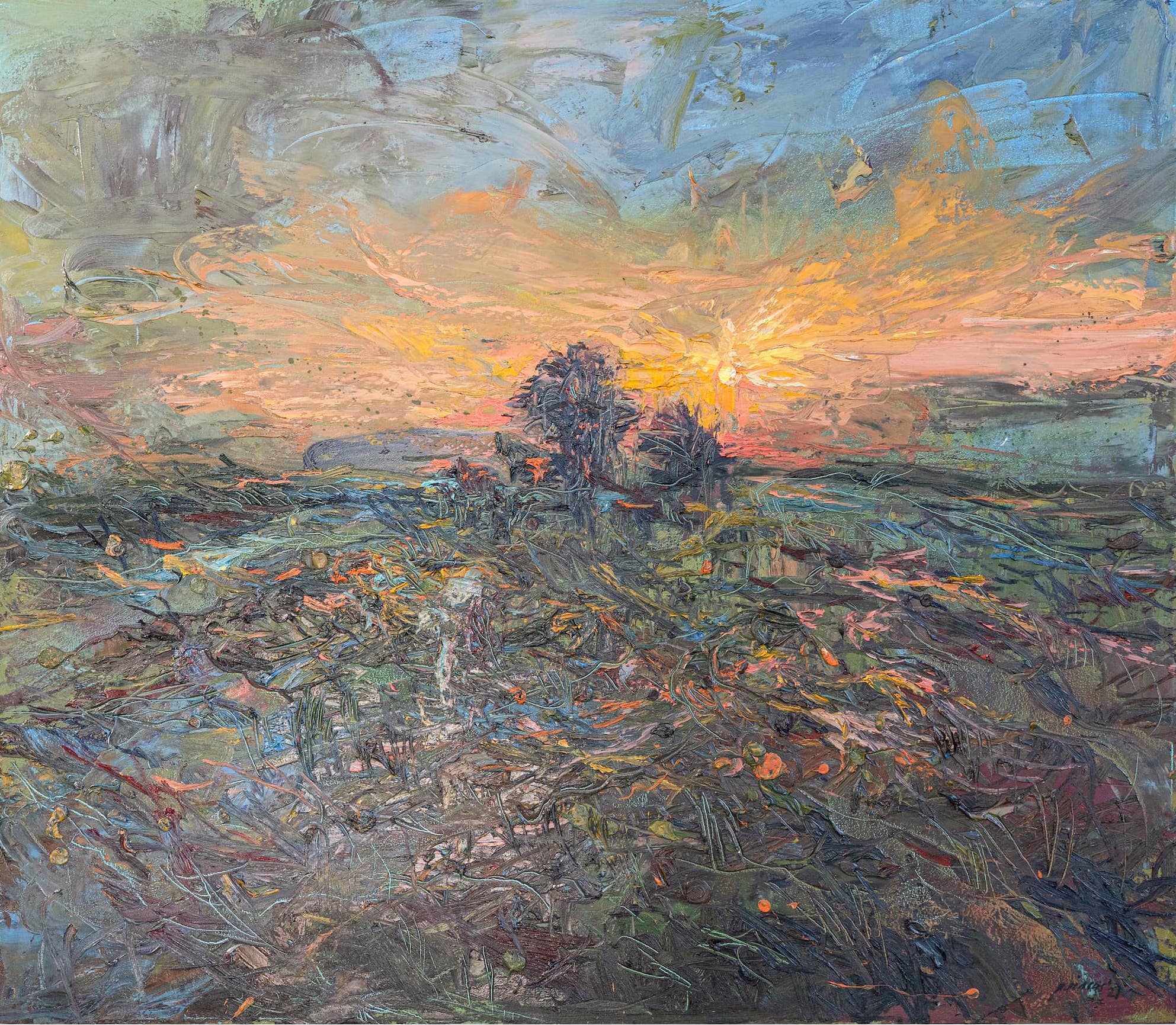 Paolo Icasas is a Filipino artist who graduated from the University of Santo Tomas in 2003, known for his abstract landscapes. These richly-applied paintings made with energetic brush markings often suggest a horizon, rocks, plants, and light breaking through a cloudy sky. Each painting is unmistakably the layering of drips, smears, and strokes of thickly applied oil paint, features that resonate with the primacy of colour and seductiveness of the materiality of paint. Icasas large-scale landscape paintings are often ‘inner scapes’ created in fits of spontaneity. They pertain to something closer to spirituality, emotions, and moral sentiments rather than to nature. This metaphysical understanding and gestural approach to painting also finds expression in another output in his rich body of work, with interpretations of traditional genres and works of the masters, such as Filipino pastorals and Hidalgo. At times, this is tied in to his interest in stringing together narratives among his varied work or are results of a long standing exploration of art historical pieces in drawings. Paolo has had numerous solo and group exhibitions in renowned galleries and institutions in the Philippines, such as the Cultural Center of the Philippines, Blanc gallery, Silverlens, and West Gallery.