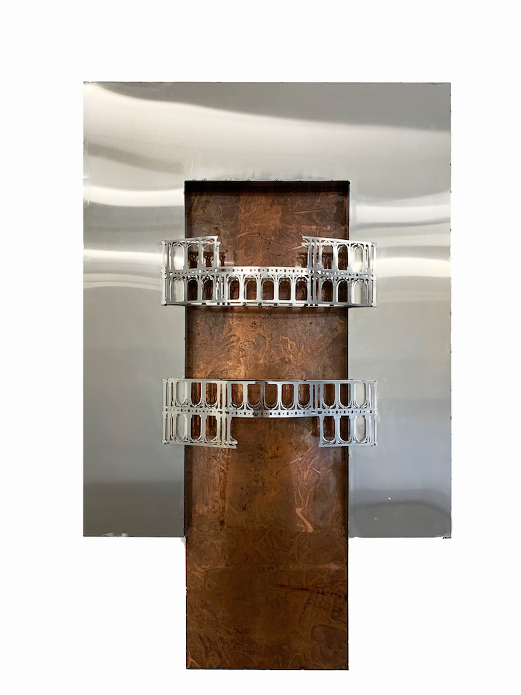 Rattana Salee, ‘Other Place’, 2021, stainless steel and copper, 74.5 x 122 x 8 cm. Image from La Lanta