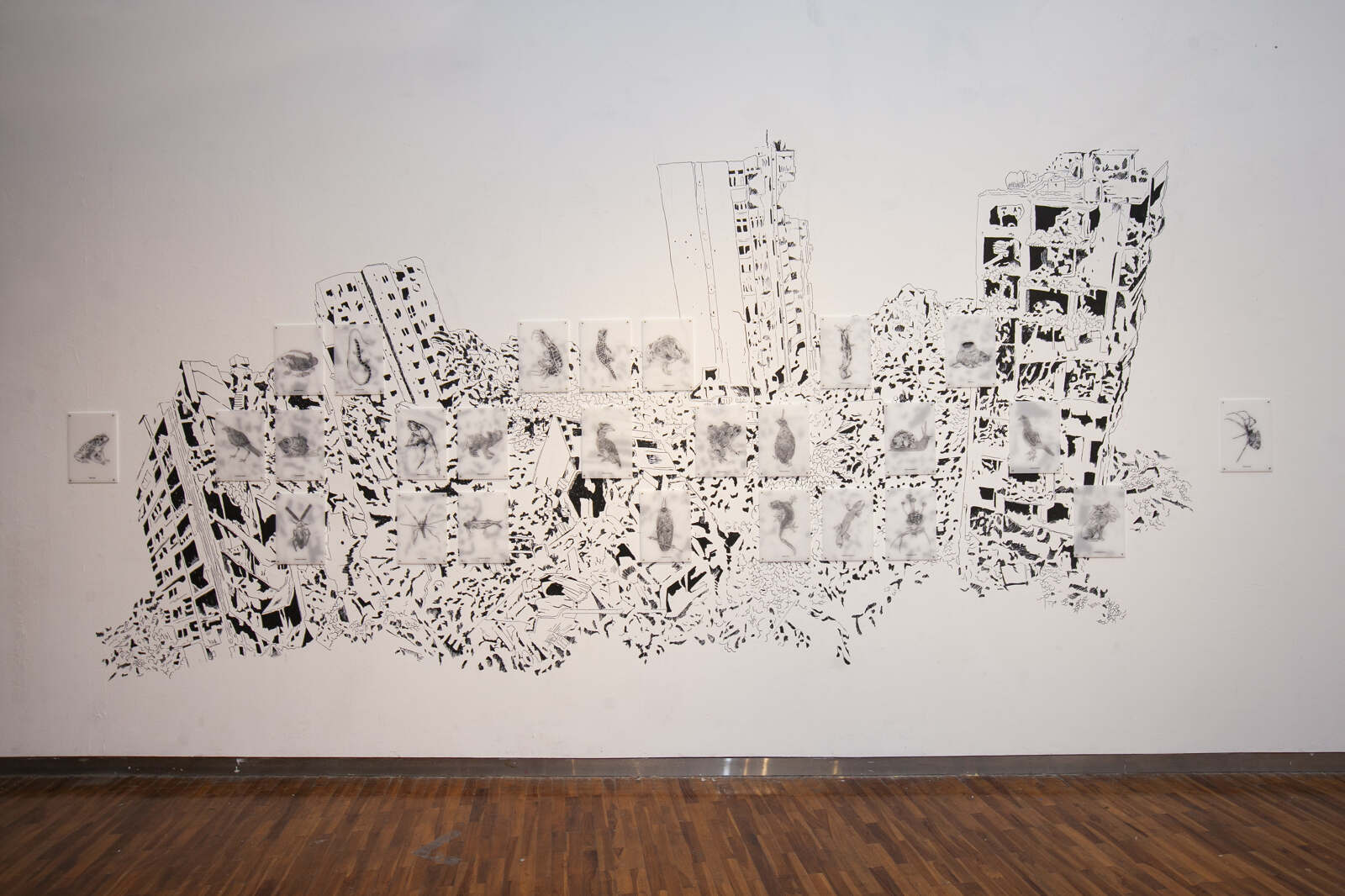 Rega Ayundya Putri is a lecturer and artist that creates large-scale works consisting of intricate illustrations using ballpoint pen on paper. She describes her illustrations as a form of escapism—her way of channeling the inner turmoil in her mind, creating space to breathe and survive amidst the blows of cultural currents. Her latest artistic research addresses topics surrounding speculative fiction, where she presents images of animals in a dystopian future, shaped from environmental destruction.