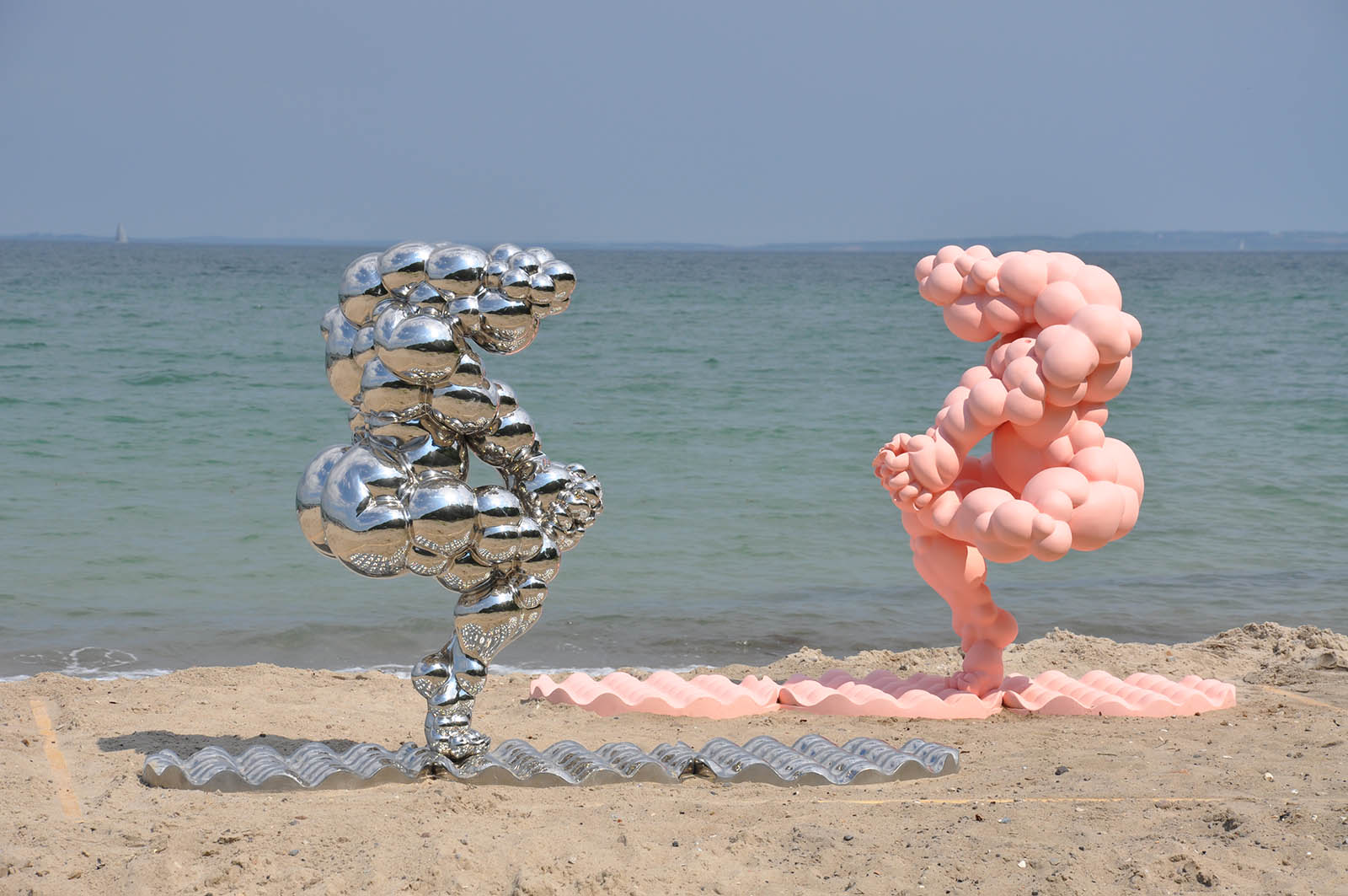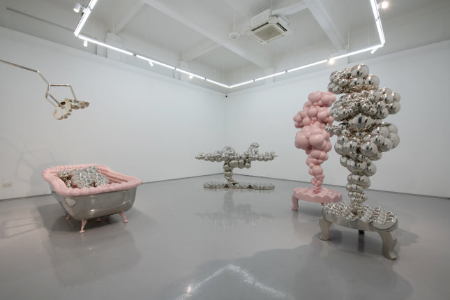 Having studied at the Nanyang Academy of Fine Arts (Singapore) and the Glasgow School of Art (UK), Yeo Chee Kiong is fascinated with the language and spatial relationship between object, space and authorship. His work destabilises the familiar notions of spatial proportions and perspectives, whilst examining the human conditions in the construction of an extended surreal world. Throughout his career, Yeo has been bestowed with multiple outstanding awards and commendations. This includes: he NAFA Distinguished Alumni Medal for his outstanding achievement in Singapore art scene (2016), SG50 Commemorative Public Sculpture Competition, National Museum of Singapore (2015), JTC Green Core Public Sculpture Open Call (2014), the LTA Downtown Line Art Competition, ExpoStation (2012), Legacy Sculpture for Singapore 2010 Youth Olympic Village Sculpture Competition, Grand prize for the APB Foundation Signature Art Prize (2008), NAC Young Artist Award (2006), 14th Asian Artists Award, VSC Fellowships (2006 – 2007), Nanyang Academy of Fine Arts 68th Founder’s Day Commendation Award (2006) and Grand prize for the 2nd CDL Singapore Sculpture Award (2005). Yeo was also short-listed as one of the 25 outstanding finalists amongst a total of 574 international entries whilst participating in the International Competition for Young Sculptors in Milan, Italy in 2006. He was the recipient of the Dr. Mary Doughty Smith Scholarship at Glasgow School of Art and John Kinross Scholarship at Royal Scottish Academy. Thus far, he has held numerous solo exhibitions internationally, such as at Juming Art Museum, Taipei (2017), Ngee Ann Kongsi Galleries, NAFA, Singapore (2016), Cite International Des Arts, Paris (2013), Richard Koh Fine Art Gallery, Singapore (2011), Esplanade – Concourse, Singapore (2009), National Museum of Singapore (2007), Esplanade – Jendela Gallery, Singapore (2007), Red Mill Gallery, Vermont Studio Centre (2006) and The Substation, Singapore (2001). Yeo is currently the Visiting Assistant Professor, Sculpture Department, National Taiwan University of Arts. ‘Bubblelloon’, is an ideal state of imaginative perfection, to reflect the sculptor’s mischievous desire in proposing an unprecedented sense of a beautiful formless form. It is one of the key sculpture elements under the umbrella of A Beauty Centre Project 2016. The sculptures featured push the viewer to engage in “self-improving” activities, being given space and time to reflect on their own ideals, as well as contemporary “self-enhancement” obsessions, from fitness and body “sculpting”, and the breathless race to achieve “mindfulness”, to flaunting a sense of a self-loved self. Central to Yeo’s works are his exaggeratedly female globular forms, bloated on a caricatured sexuality that verges on the comic, grotesque and cute at the same time. Yeo’s sculptures can be seen as art mirroring its own mirrored artifice, yet remaining deeply inspired by natural forces. There is definitely a sense of excess sexuality in Yeo’s cumulus-cloudlike gorged and turgid female pink and silver forms, as they appear to luxuriate in their swelling roundness. Excess as opposed to elegance animates Yeo’s sculptural forms of feminine beauty: they straddle inherited baroque and rococo aesthetics, and we can accept that both approaches are inspirationally available to contemporary practitioners regardless of socio-cultural contexts. Yeo’s critic of contemporary society’s narcissistic obsessions could be read as veering on the voyeuristic, or misogynistic. Still, artistic ideals of “perfection” are evident, as the artist takes pride in production quality of each object. The sculptor too is on a quest for beauty.
