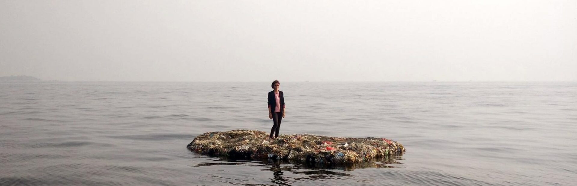 Shifting the focus from Chiang Mai to Bangkok where, despite all odds, the 2020 Bangkok Art Biennale (BAB) opened to the local art circle, a number of works convey environmental concerns with the broad curatorial theme Escape Routes. Of note is the video installation 1001st Island: The most sustainable island in archipelago (2015–16) by duo Tita Salina and Irwan Ahmett. Addressing the problem of garbage disposal in Indonesia, the artists worked with local fishermen to create an artificial (and ironically sustainable) island made of marine debris and litter (Fig. 3). Also compelling is Martha Atienza’s renowned video work Our Islands 11°16’58.4″N 123°45’07.0″E (2017), which confronts the climate crisis through the changing lives of the Visayan Sea islanders in the Philippines. Shot underwater, the seabed of dead coral shown in the video is likened to the transformation and loss of cultural heritage.