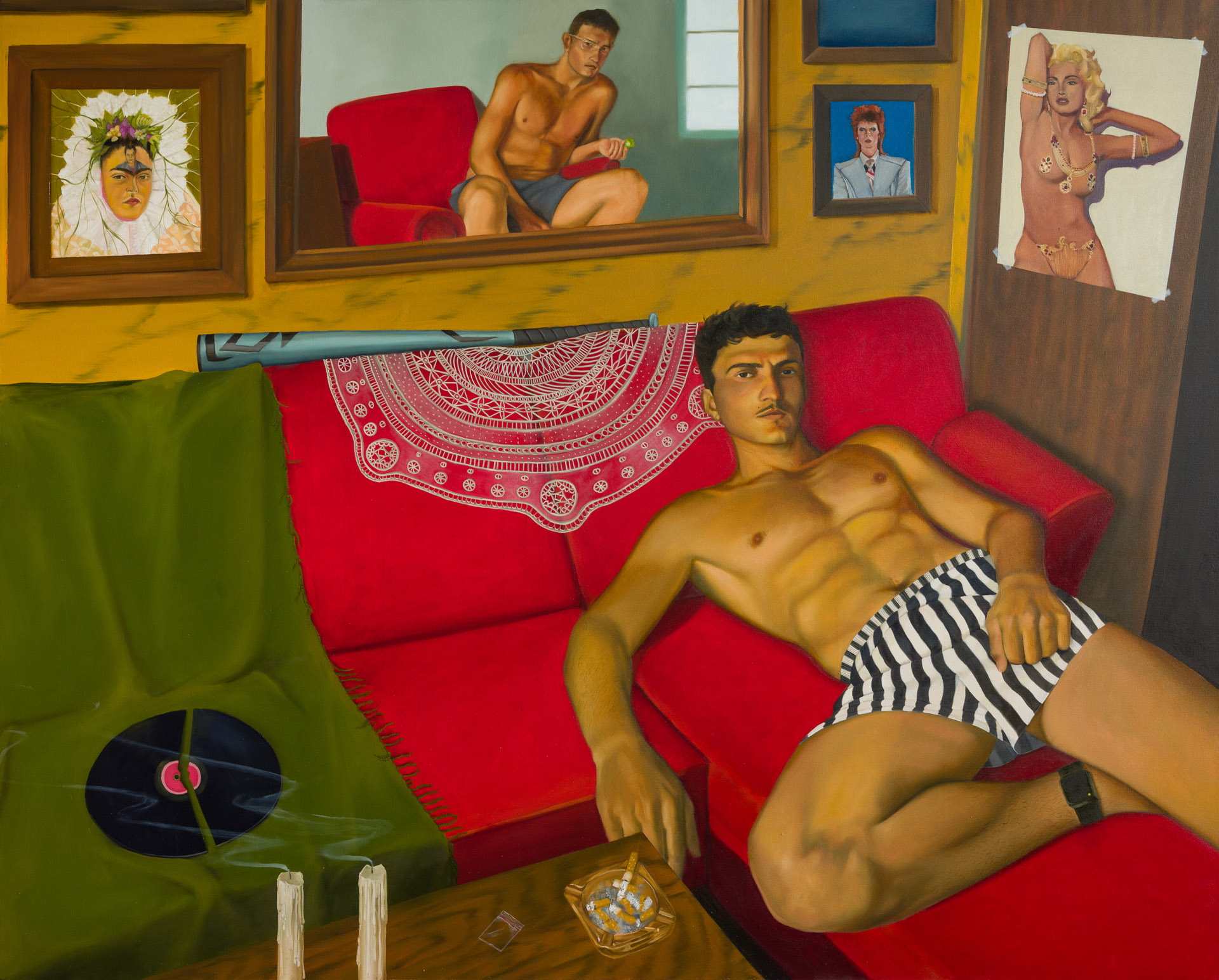 A recurring feature of your work is the references you depict in them, from Frida Kahlo, to Sinead O’Connor, to tarot cards. How do these influences shape the narratives or undertones in your paintings?