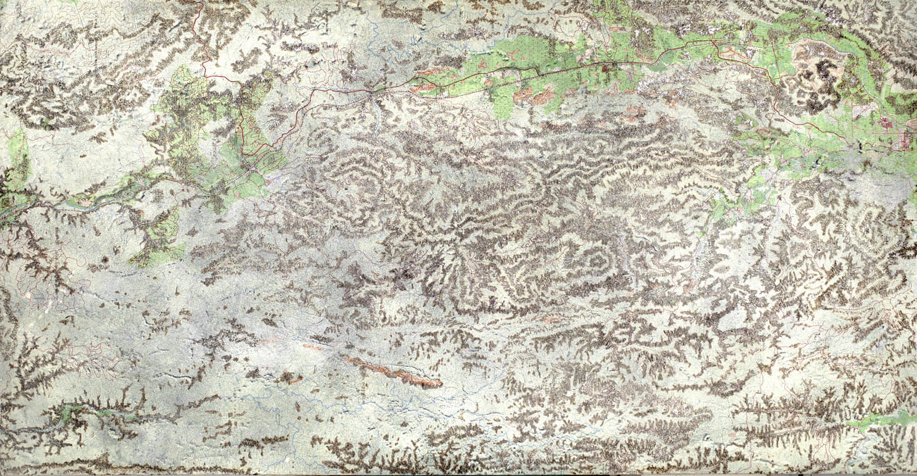 Photo (Left): Ngo Dinh Bao Chau, ‘Diagram of the Repetition’, 2024, paper powder on silk, wooden frame, stainless steel, 50 x 110 x 28 cm. Image courtesy of the artist and Sovereign Asian Art Prize