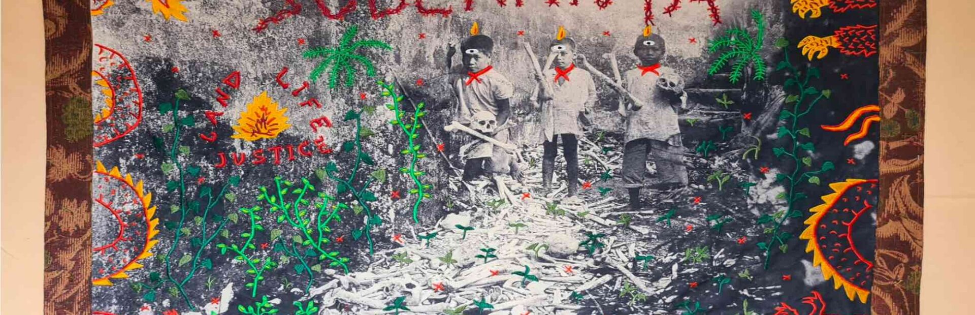 The photograph was taken by Dean Worcester who was an American colonial administrator during US occupation in the Philippines. He took several photographs which became instrumental in justifying the violent occupation which lasted until WW2. The legacy of this colonial gaze persists in constant attacks on our sovereignty. The scene shows three young boys standing in a mass grave, presumably looking for loved ones, scavenging for valuables or playing. At its core, it shows how the youth was made to endure such realities of colonial violence.